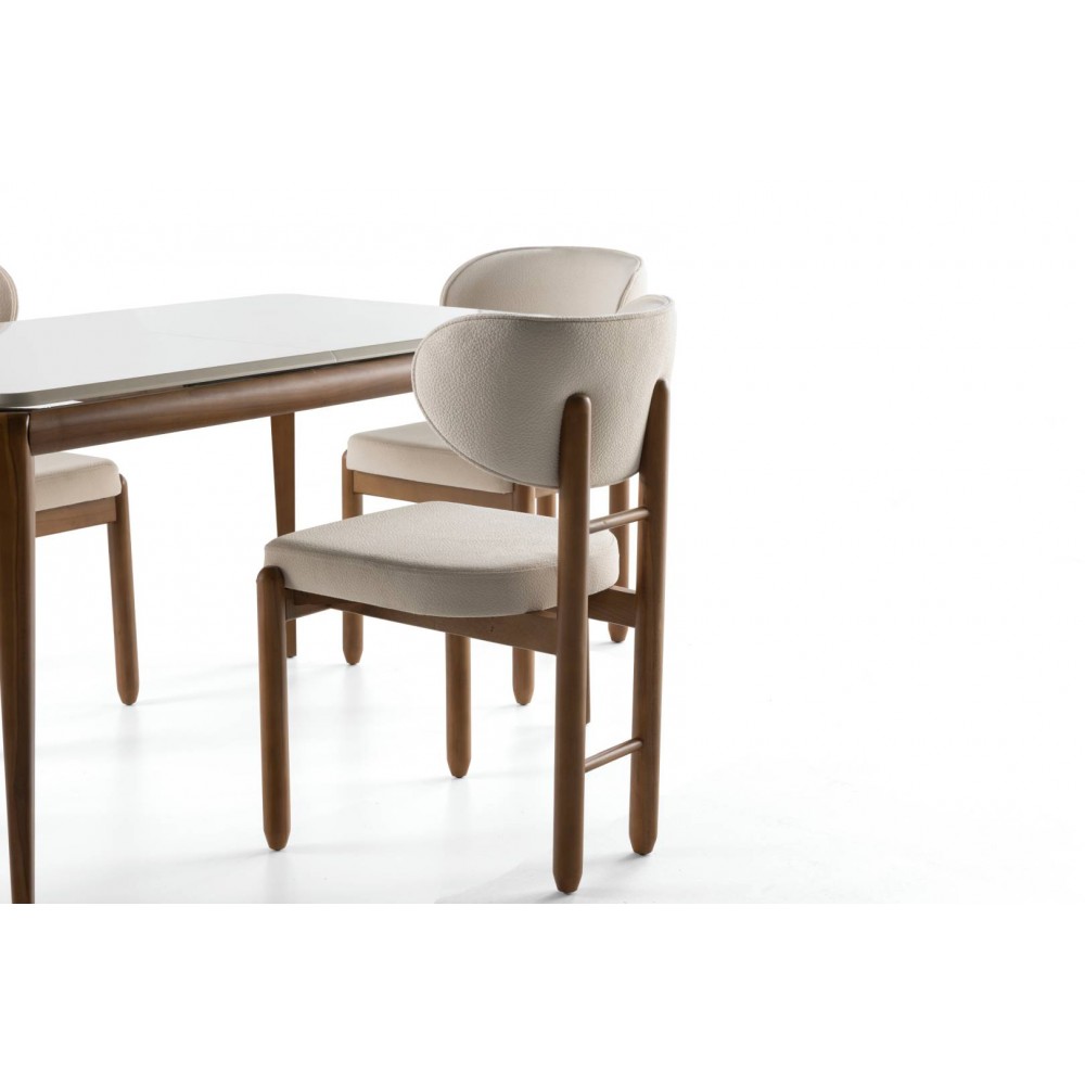 İskandinav tarzının yalın ve modern çizgilerini taşıyan Fagus Masa Takımı, açık renk tonları ve minimal detaylarıyla ferah bir ortam yaratır.
