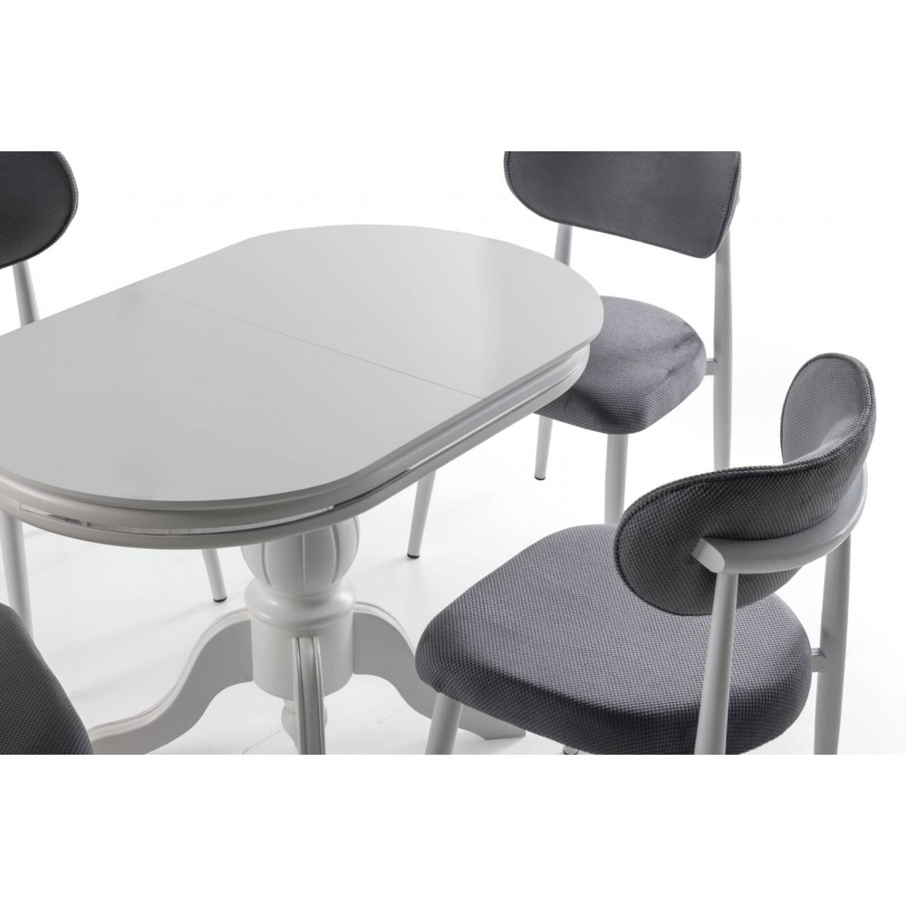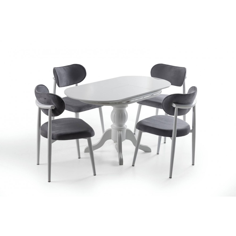 Retro Ahşap Ayaklı Masa Takımı - Karbeyaz